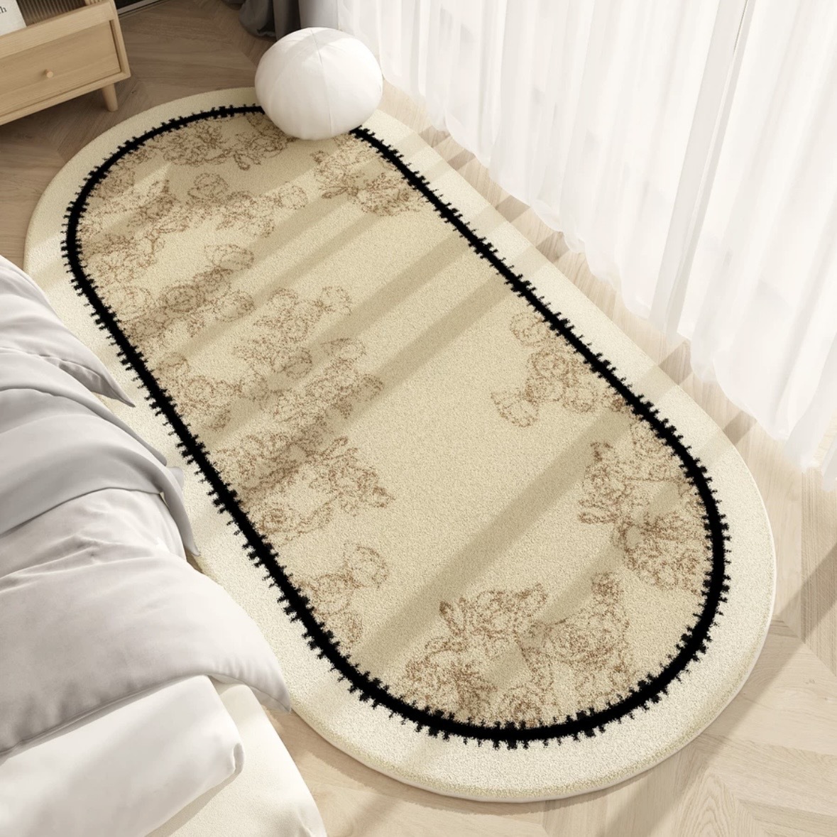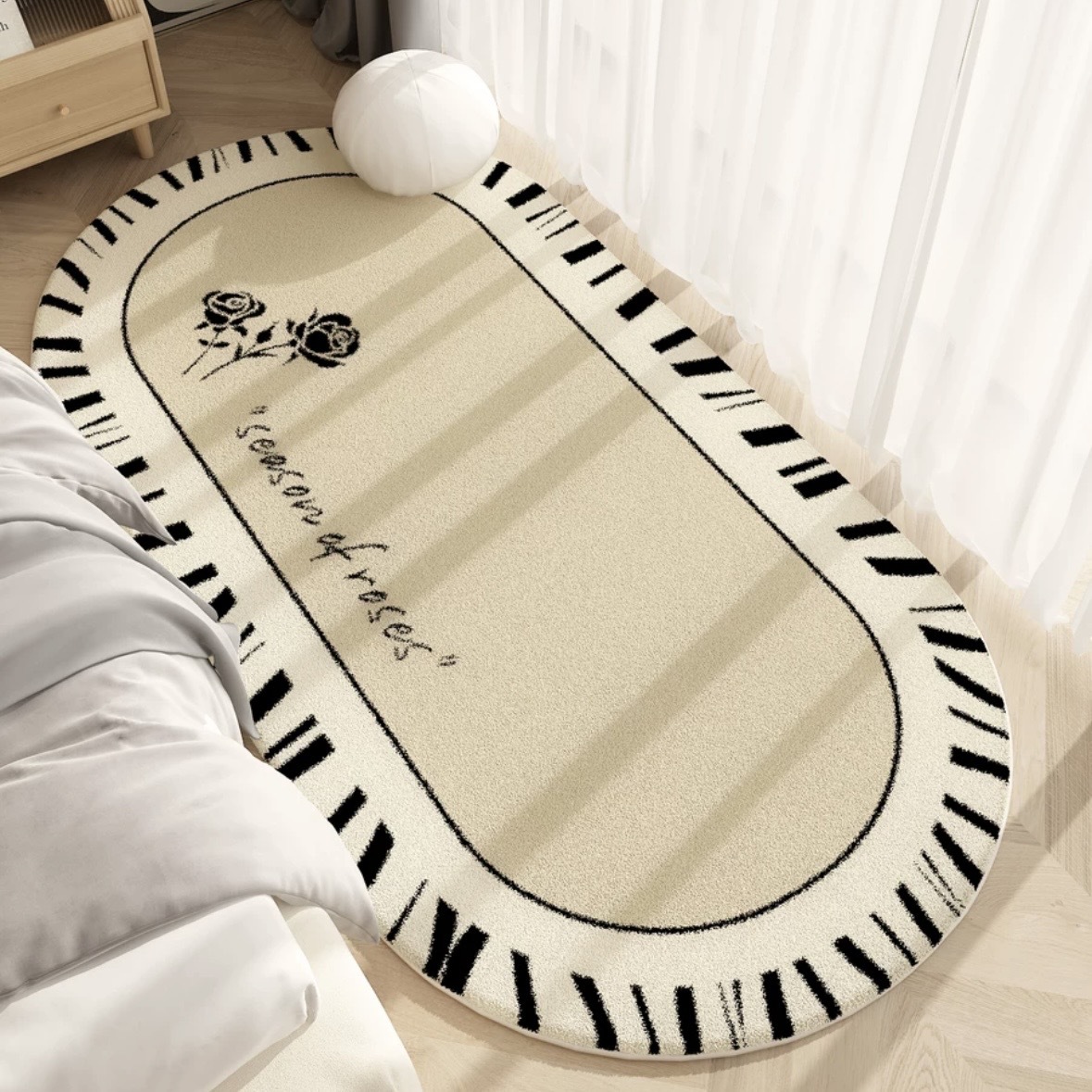 Light luxury high-grade plush carpet bedroom bedside blanket rose Oval blanket machine washable household carpet non-slip mat