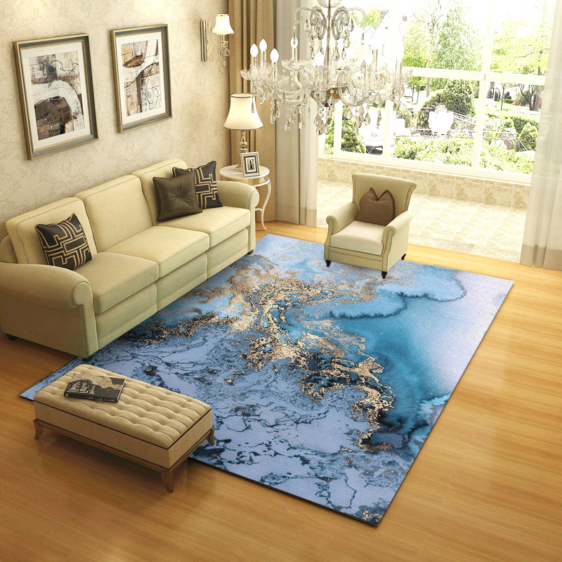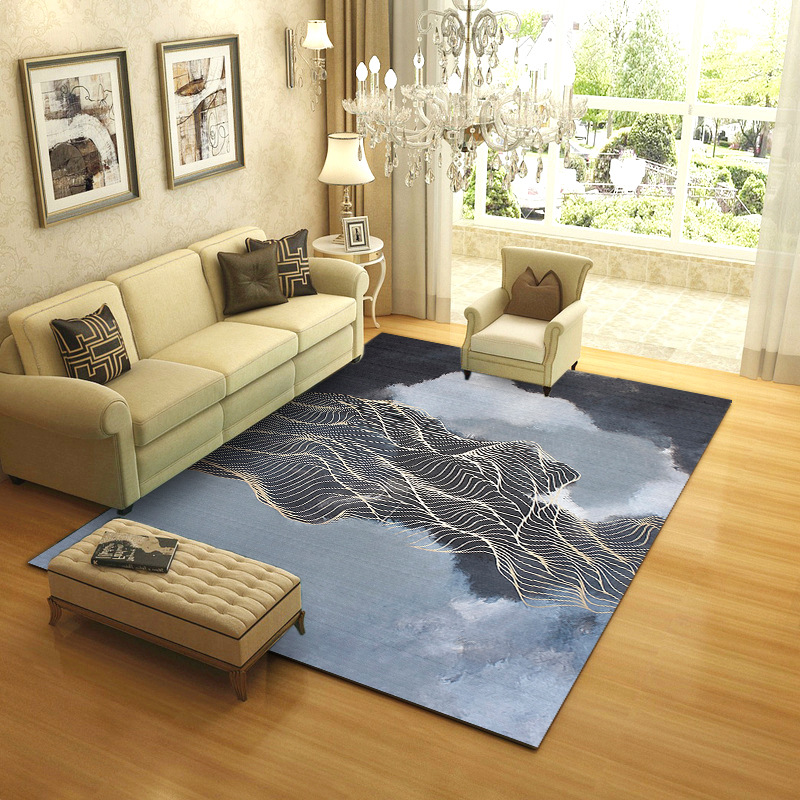 Light luxury living room carpet floor mat ink painting Crystal velvet carpet living room stain-resistant absorbent non-slip sofa coffee table blanket