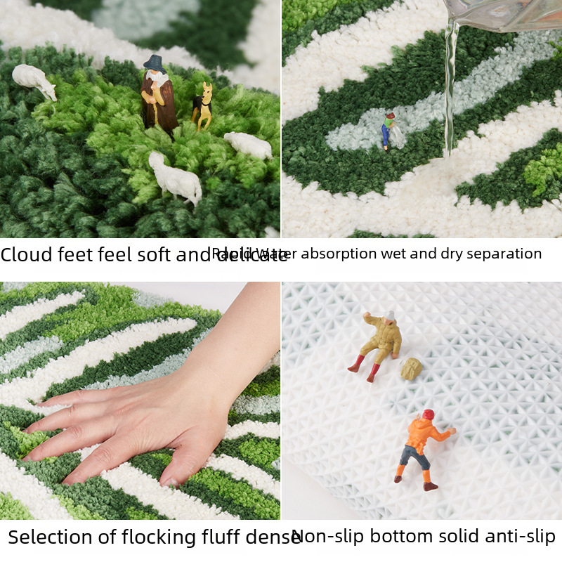 Nordic plant leaf tufted carpet bathroom non-slip floor mat bathroom living room bedroom opposite sex floor mat